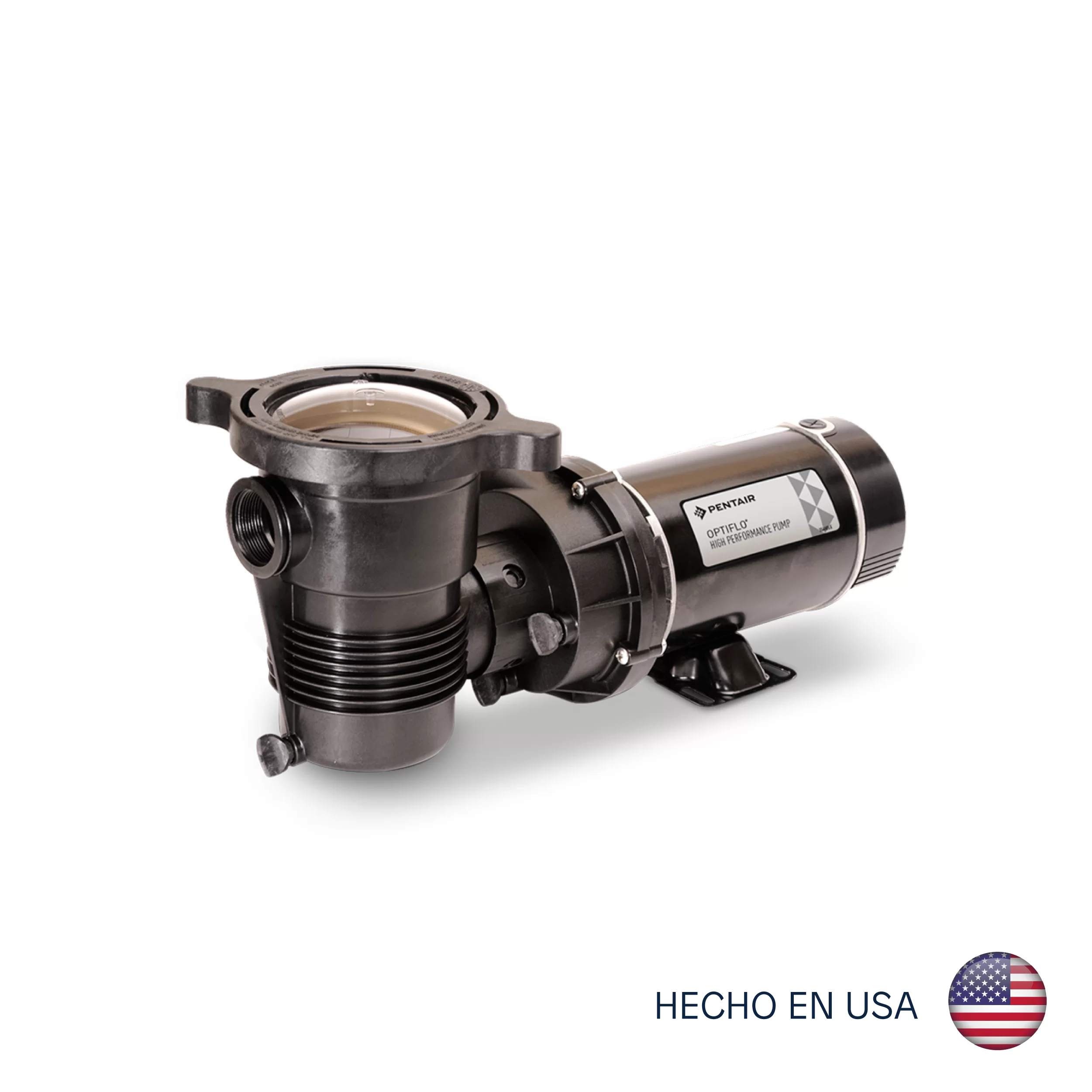 La bomba OptiFlo cuenta con un motor de 48 pernos de bastidor pasante, fácil acceso para cambiar la posición del puerto de descarga, dar servicio al impulsor y una innovadora tapa Cam and Ramp.